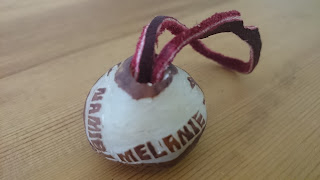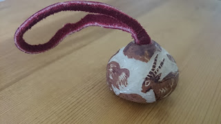 Das ist eine geschnitzte oder vielmehr „beschnitzte“ Nuss! Die Herero-Kultur in Namibia verziert Makalani-Nüsse, „Ozunduka“ heißt das dann, wie Volkan mir zum Glück erklärt hat. Sonst wüsste ich gar nicht, dass es sich bei dem kunstvoll-filigranen Gegenstand um eine Nuss handelt!
