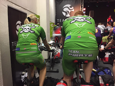 Beim Weg durch die Messehallen bin ich schon optisch geradezu erschlagen von dieser schrillen Lifestyle-Fitness-Meute. Hinzu kommt die Akustik: Es gibt jede Menge Fläche mit jeder Menge Sportangeboten drauf. Und zu jedem dieser Angebote läuft sehr laut Musik, so wie in den Gruppenkursen im Fitnessstudio. Man hat also gefühlt auf jedem Schritt und jedem Tritt eine 1.800-fache Gruppenkursmusikbelastung. Wenig später reduziert sich das wenigstens auf eine, wenn auch sehr laute, aber gewohnte Musikquelle: das Gewummer des Spinning-Techno-Sounds.