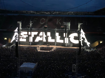 Gestern Abend wurde ein dichter Gitarrenteppich von Westen her über Köln ausgerollt, festgenagelt auf einem fetten Bassbrett: Metallica traten im Rheinenergie-Stadion auf. Vor Jahren war ich im Berliner Olympiastadion bei Depeche Mode, und diese Stadienkonzerte – mehrere Zehntausend Menschen feiern synchron die Künstler auf der Bühne – sind schon etwas ganz Besonderes.