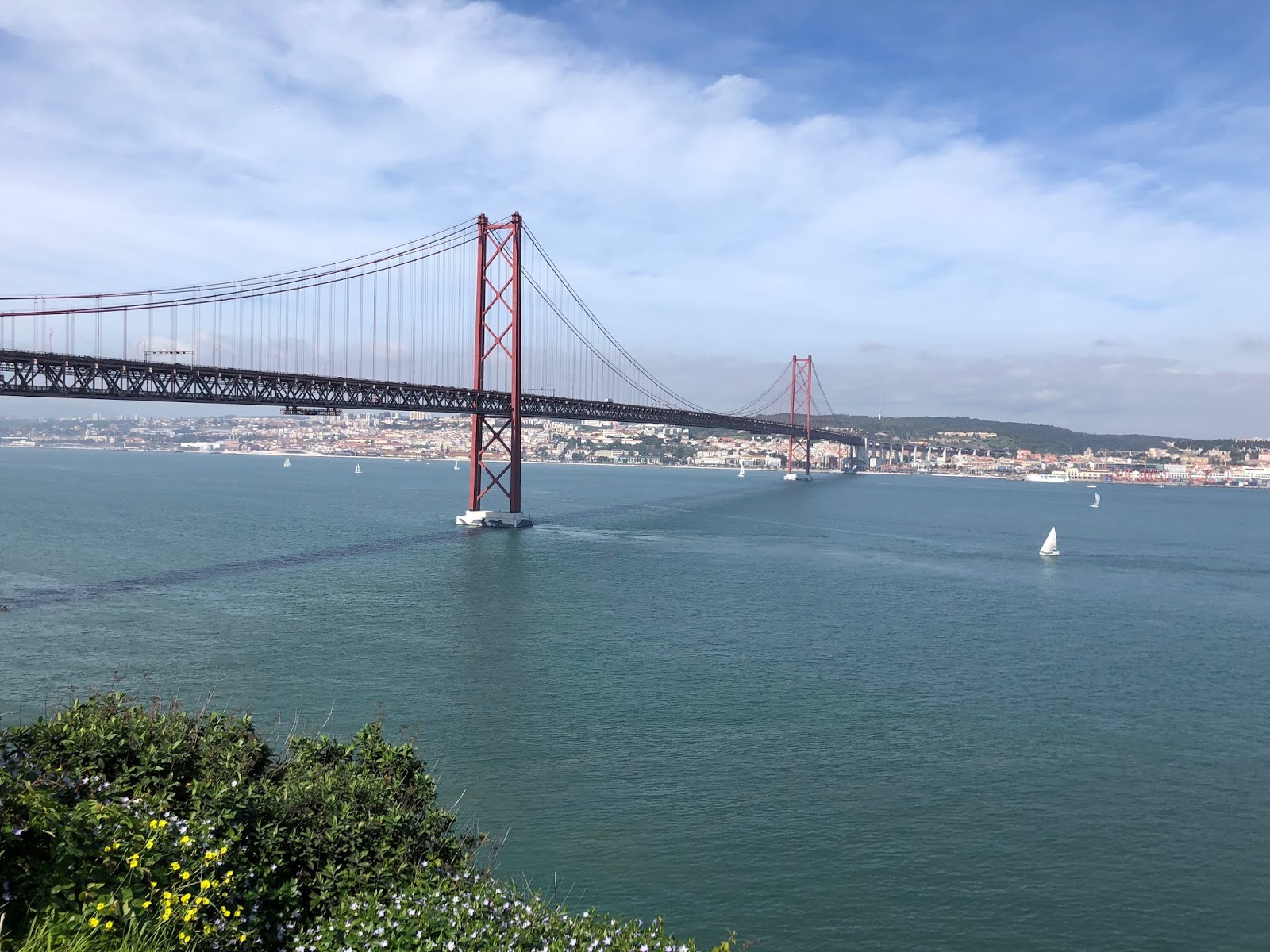 | Blick von der Statue auf Lissabon (links) und Almada (rechts) |