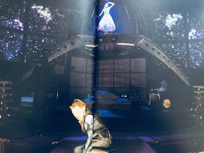 Das weiß ich alles nicht, als ich nach Düsseldorf fahre. Ich weiß nur, dass meine Freundin mir das Ticket fürs Bowie-Musical zum Geburtstag geschenkt hat, weil sie weiß, dass ich den schon immer gut finde. Überrascht bin ich über das Publikum am frühen Sonntagabend in der ausverkauften Zusatzvorstellung: viel weißes Haar. Bestimmt Opernleute, die mit ihrem Abo alles abopern, was geht, und überhaupt nicht wissen, worum es in Lazarus geht. Gut, das haben sie mit mir gemein. Oder dass das Stück von David Bowie ist. Oder wer David Bowie ist. Dafür spricht, dass einige Weißhaarige im Verlauf der Vorstellung das Theater verlassen. Das Musical selbst ist nicht nur bezüglich der Musik, sondern auch der Figuren und der Handlung ein Panoptikum des Schaffens von David Bowie: Es gibt eine zentrale Figur, eine Art Todesengel, die so aussieht, wie Ziggy Stardust aussah. Auch so angezogen ist. Es fehlt nur der Blitz in der Mitte des Gesichts. Auch so ausgemergelt drogen-dünn ist wie es David als Ziggy war und einfach umwerfend androgyn ausschaut in dem transparenten Schlaghosenfummel. Noch dazu kann der Todesengel so perfekt auf Highheels tanzen wie man das nur von Jorge aus vergangenen Heidi-Topmodel-Staffeln kennt. Vielleicht hat der ihn trainiert? Der Plot ist eine Zwischenwelten-Geschichte von einem Außerirdischen, der auf der Erde gefangen ist und nicht zu seinem Heimatplaneten zurückkehren kann. Eine Spezialeinheit, bestehend aus schlampig-orgiastisch herumfeiernden Engeln und einer ebenfalls in der Zwischenwelt festhängenden Figur, einem lebendig begrabenen Mädchen, vertreibt ihm die Zeit in seinem Wahn, den er durch kontinuierlichen Ginkonsum aufrechterhält. Der Außerirdische sieht so aus wie der späte David Bowie. Das Casting ist wirklich sensationell gut. So gut, dass mir am Ende die Tränchen übers Gesicht kullern, weil es gerade so ist, als wäre David Bowie ein zweites Mal gestorben, als seine Bühnenkopie alias Außerirdischer dann doch noch den Planeten verlässt.